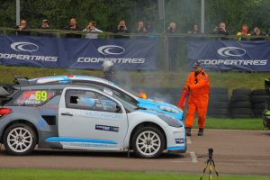 In the first race Mark Flaherty jumped the start and when taking the restart his car started to catch fire. The marshals were quickly on the scene to put the small flames out but this put the Irish driver out. This left 4 cars on the grid with Dominic Flitney unable to start after he had had issues with his transponder in practice.