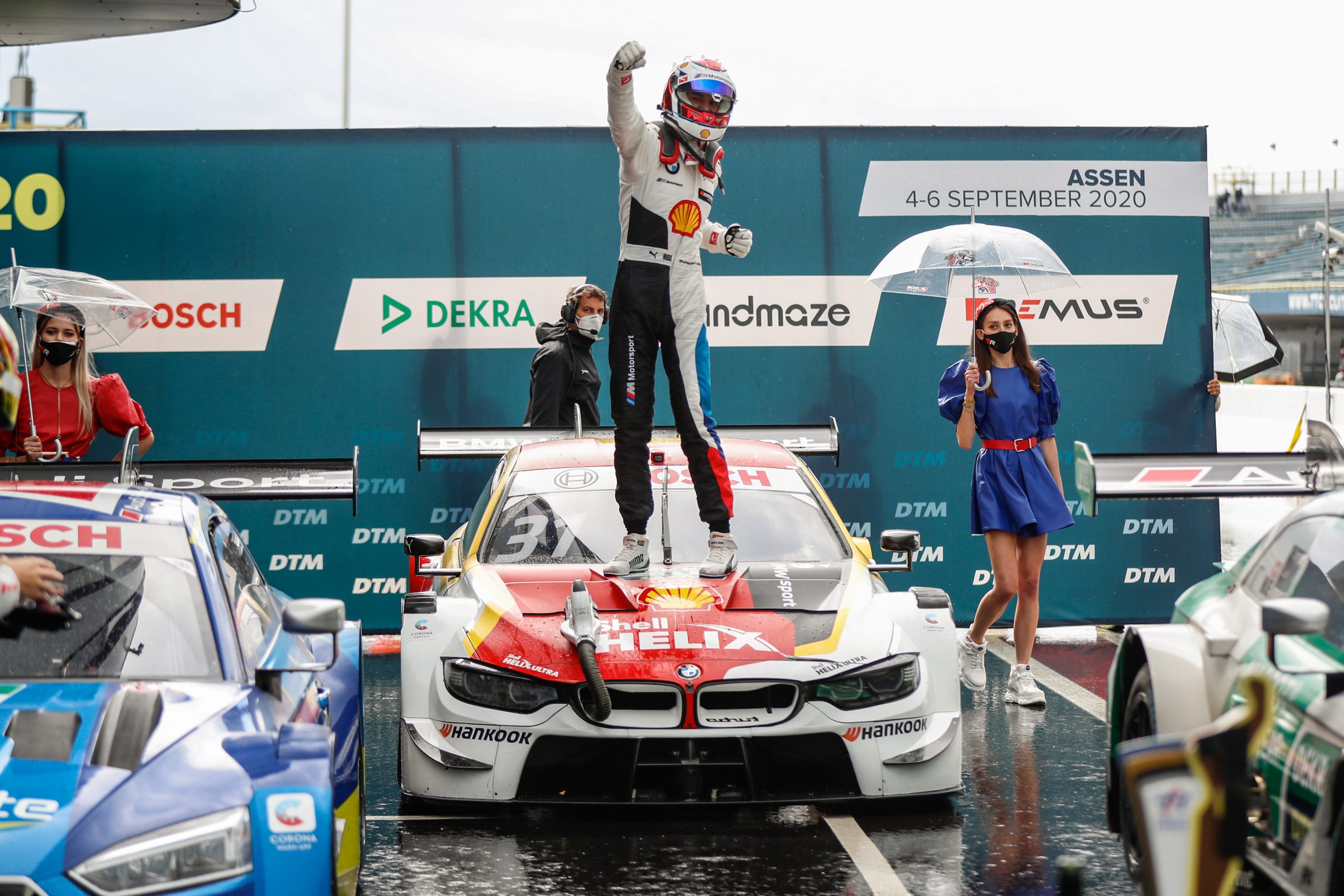 Yesterday’s race winner Frijns finished in second. Ahead of the race, a surprise awaited the Dutchman. His girlfriend stood in front of his car on the starting grid as a grid girl. ‘Last year, she made the promise to do this for me when I take my first victory in the DTM. Respect that she not only remembered it but also pulled it off in these weather conditions.’