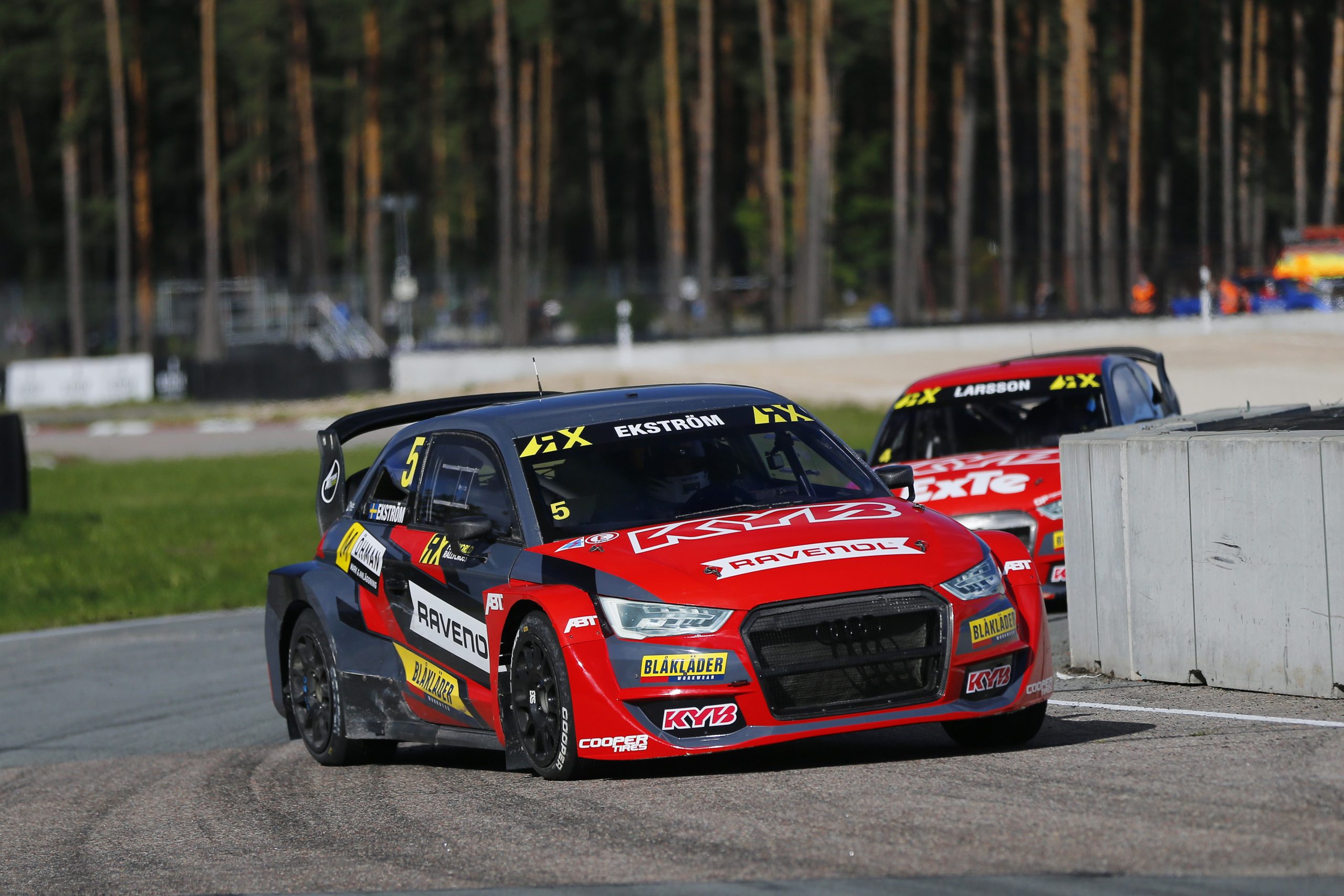 Larsson copied the move made by teammate Ekstrom in the first race, closing the door on Andreas Bakkerud at turn one. Larsson went on to win the race. Bakkerud took second place on the last lap from Timo Scheider in the run to the line after Scheider rejoined from the joker lap. Jani Paasonen returned after problems yesterday with a fourth.
