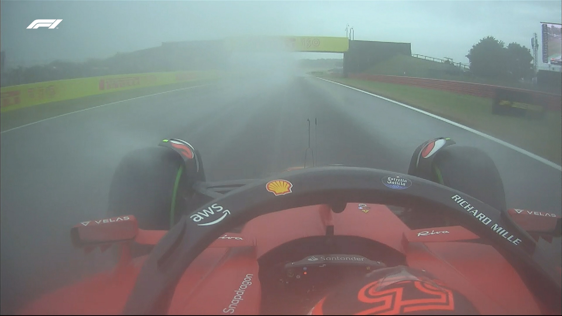 Sainz appeared to be in a troubling position after not taking an early run. As the rain got worse, the Ferrari driver was stuck in 14th. However, he was able to climb to 4th a few laps later, still 1s off pole.