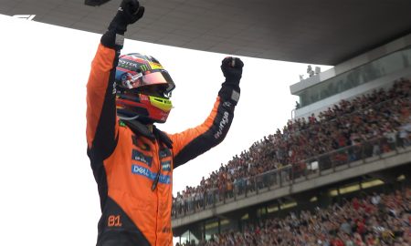 Lando Norris benefitted from a fortunately timed safety car to beat his teammate to take the victory at a wet to dry...